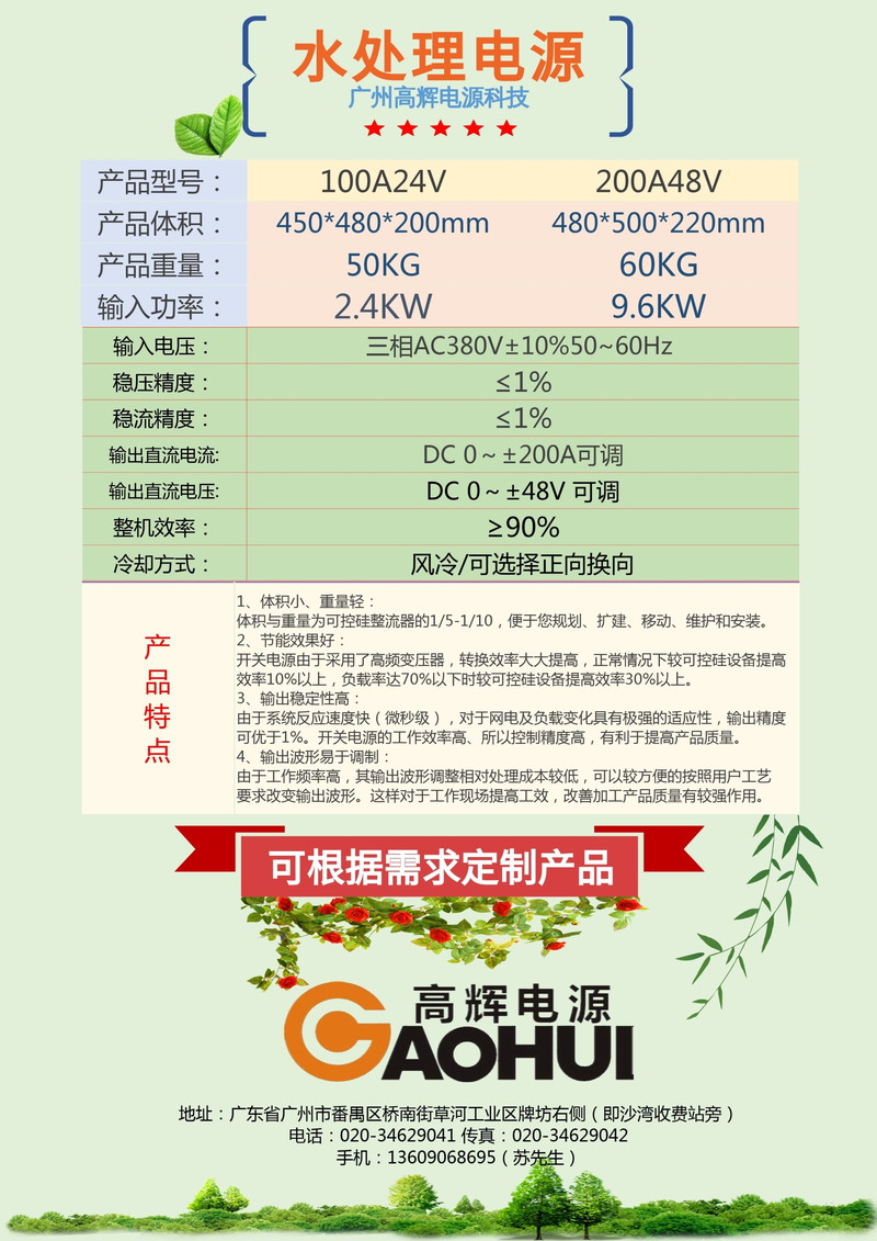 200A36V High Power Portable Adjustable Water treatment Rectifier for Sewage