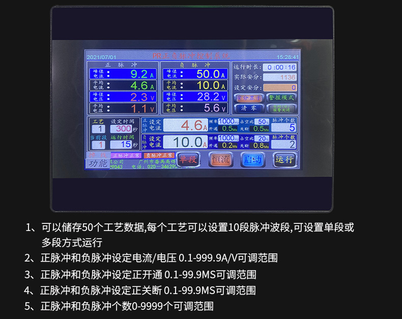 2.The touch screen human-machine interface has functions such as voltage or current setting,frequency setting,duty cycle setting and mult-time setting.
